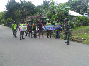 Dipimpin langsung oleg Danramil Ilung Lettu Inf Sutanto, anggota koramil melaksanakan pengakkan protokol disiplin kesehatan kepada pengguna jalan H. Damanhuri Ilung.
