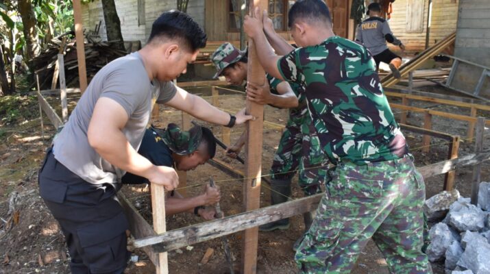 Kini Satgas TMMD ke-116 Kodim 1002/HST membangun kembali rumah Ibi agar layak untuk di huni. Sabtu (13/05).