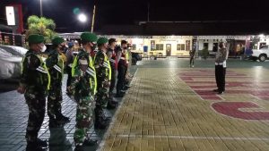 Patroli gabungan diawai dengan apel pengecekan personel di Mapolres HST jalan ir.H.P.M.Noor Barabai Kecamatan Barabai Kabupaten HST Kalimantan Selatan. Selasa (1/11) malam