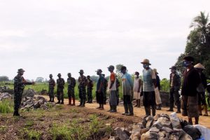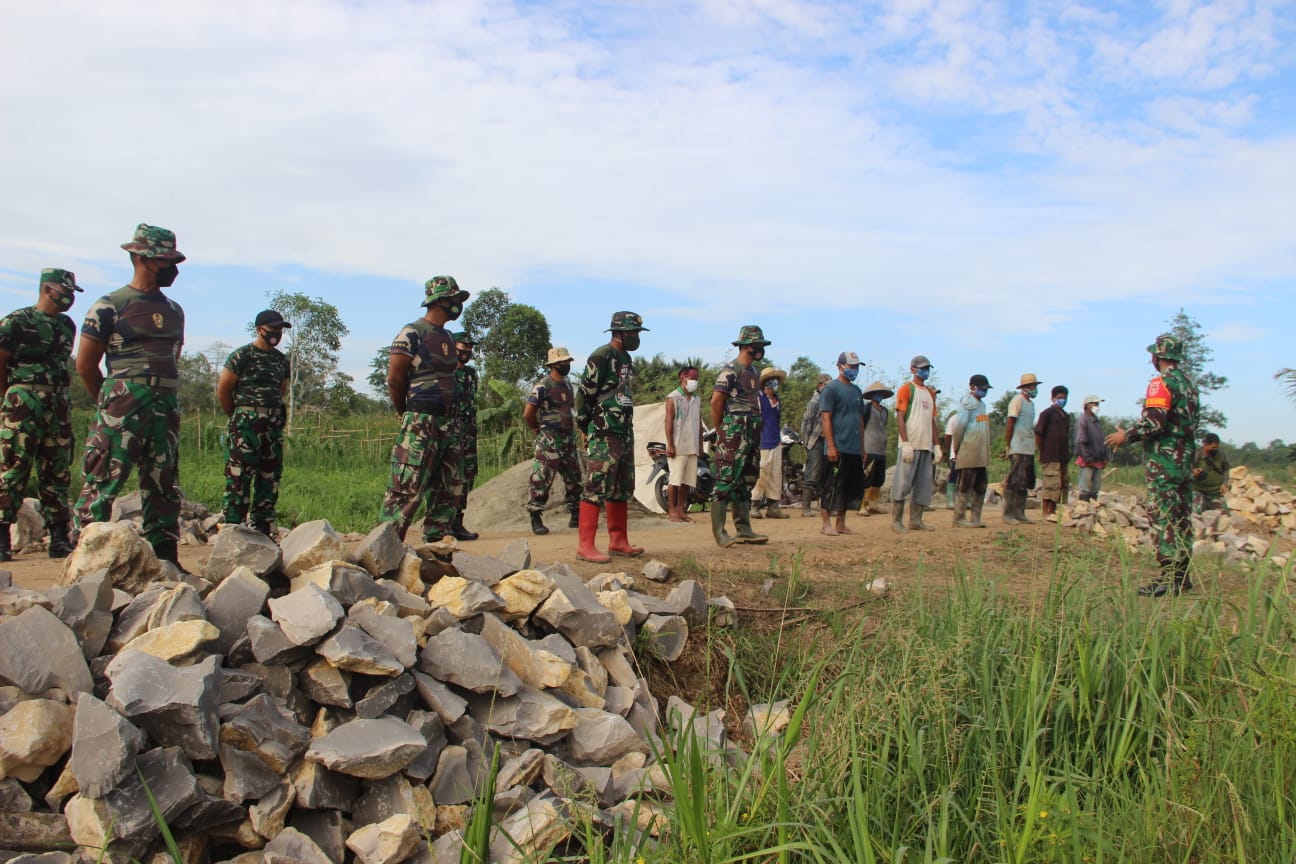 Seperti di lokasi Pra TMMD ke-112 tahun 2021 Kodim 1002/HST, anggota satgas Pra TMMD desa Rantau Keminting Kec.LAU Kab.Hulu Sungai Tengah melaksanakan apel pagi dipimpin oleh Danramil 1002-08/Labuan Amas Utara Kapten Inf Lilis Sutanto, Senin (06/09/2021) pagi