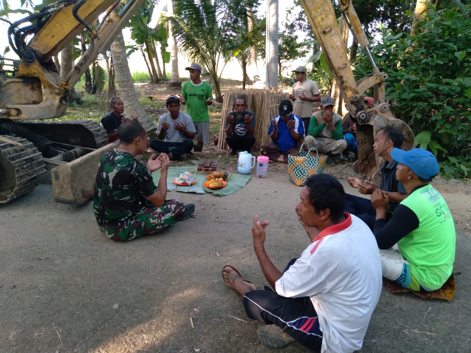 Sebelum resmi dibuka, demi kelancaran, keamanan dan menjadikan berkah, anggota TNI dan warga masyarakat Desa Rantau Keminting menggelar doa bersama di Titik 0” pada sasaran perbaikan mutu jalan.Rabu (01/09).