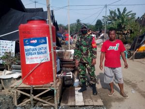 Selain itu para Babinsa juga membantu pemerintah daerah dalam rangka pemulihan pasca bencana, diantaranya membantu pembuatan hunian sementara, pembersihan sampah dilokasi bencana dan melaksanakan pendisiplinan protokol kesehatan covid-19.”tegasnya.(pendim1002).