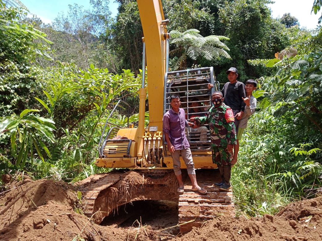 Seperti disampaikan oleh Danramil 1002-07/Pagat, Babinsa kami Serda Embran Hartono bersama relawan dan warga masyarakat saat ini membuka akses jalan dari desa Datar Ajab menunju Dusun Pantai Mangkiling menggunakan alat berat. Rabu (10/02).