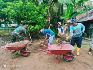 Disela-sela kegiatan gotong royong, Sertu Rusmadi terus menghimbau warganya agar selalu hidup rukun dan melestarikan budaya gotong royong demi memajukan desa kita.