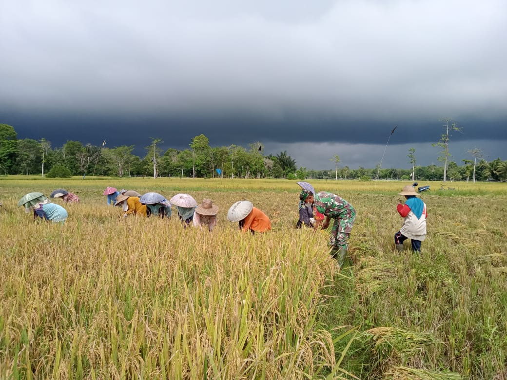 Panen padi dilakukan bersama kelompok tani Bina Sejahtera diatas lahan seluas 1,5 hektar Varitas padi Ciherang,”terang Koptu Samsuhadi.