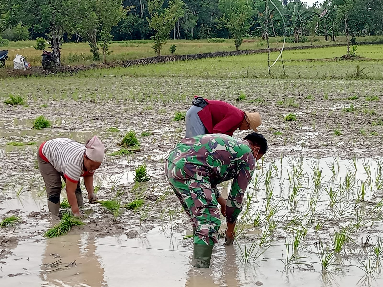 Dirinya pun sangat berterima kasih kepada Babinsa Koptu Samsuhadi yang telah melakukan pendampingan dari mulai mengolah lahan hingga saat ini tanam padi”sambungnya.