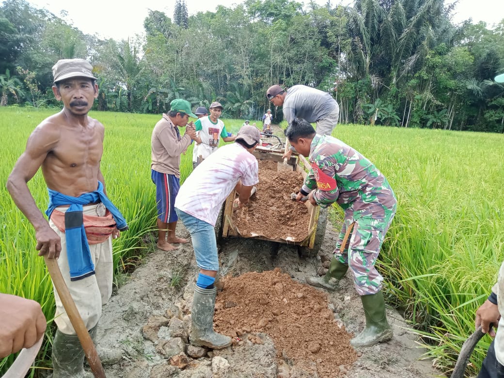 Seperti yaang dilakukan oleh Babinsa Koramil 1002-06/Barabai Koptu Samsuhadi membantu warga binaan para petani memperbaiki Jalan Usaha Tani (JUT).