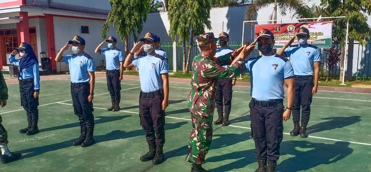 BARABAI-Kodim 1002/Hulu Sungai Tengah melalui Babinsa Koramil 1002-06/Barabai Serka Abdul Hamid dan Serda Firman melaksanakan pembinaan Fisik, Mental dan disiplin kepada Pegawai Rutan Kelas IIB Barabai di jalan H.Sibli Imansyah No.1 Barabai.Kamis (03/06).