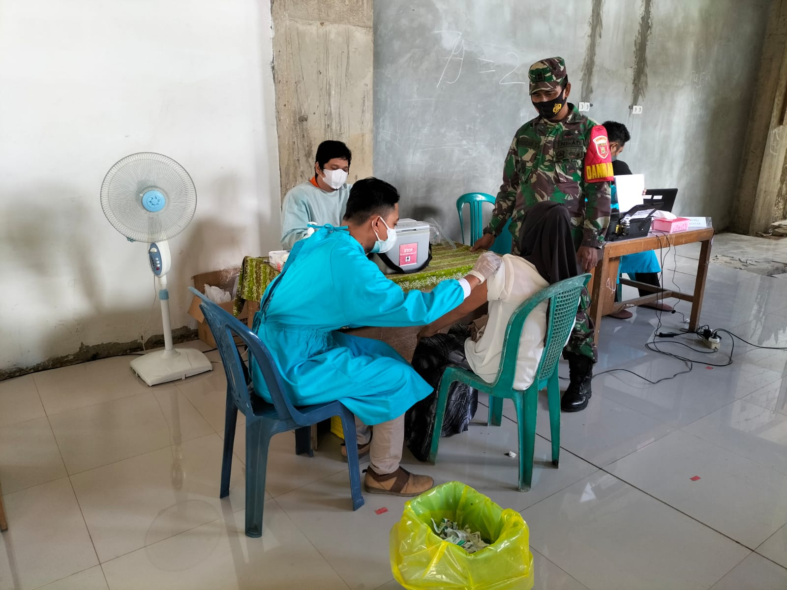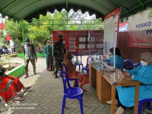 Sedangkan Serka Adi Prasetyo Babinsa Koramil 1002-06/Barabai melaksanakan pendampingan vaksinasi tahab-1 di desa Kayu Bawang yang dilakukan oleh nakes Puskesmas Awang Besar dengan sasaran warga masyarakat berusia 18 tahun keatas.