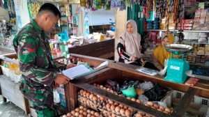 Dalam Komsosnya, Babinsa Koptu Erly Sepriyanto menanyakan berbagai harga kebutuhan pokok baik itu beras, gula, minyak goreng, telur, susu, tepung dan mie instan, serta kebutuhan lainnya.