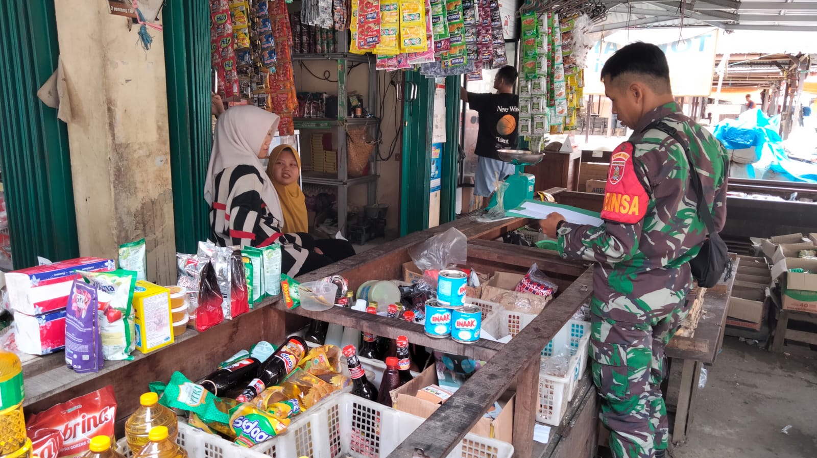 BARABAI-Koptu Erly Sepriyanto, Babinsa Koramil 1002-01/Batang Alai Selatan Kodim 1002/HST melaksanakan pengecekan ketersediaan Harga Sembako secara langsung di Toko Sembako milik Ibu Ayu, Pasar Tradisional Birayang, Kabupaten Hulu Sungai Tengah. Senin (06/2/2023) kemarin
