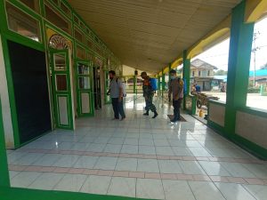 Sementara itu ditempat terpisah Serda Mulyadi bersama Bhabinkamtibmas dan aparat desa Benawa Tengah melakukan penyemprotan cairan disinfektan di rumah ibadah yang akan digunakan untuk sholat Idul Adha.