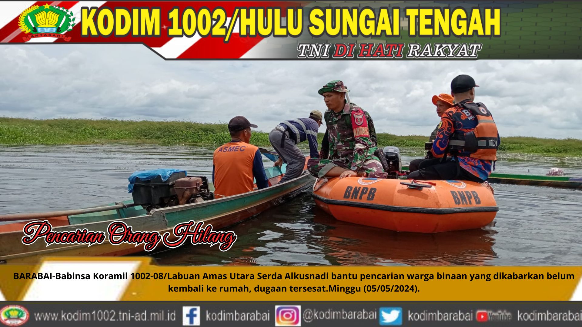 BARABAI-Babinsa Koramil 1002-08/Labuan Amas Utara Serda Alkusnadi bantu pencarian warga binaan yang dikabarkan belum kembali ke rumah, dugaan tersesat.Minggu (05/05/2024).
