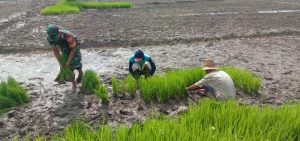 Seperti yang dilakukan oleh Serda Edy Karyani Babinsa Koramil 1002-02/Batang Alai Utara membantu Syarifuddin dari kelompok tani Maju Bersama Tanam padi jenis Ciehirang diatas lahan seluas 0,6 hektare di desa Pauh Kecamatan Limpasu Kabupaten Hulu Sungai. Selasa (27/12).