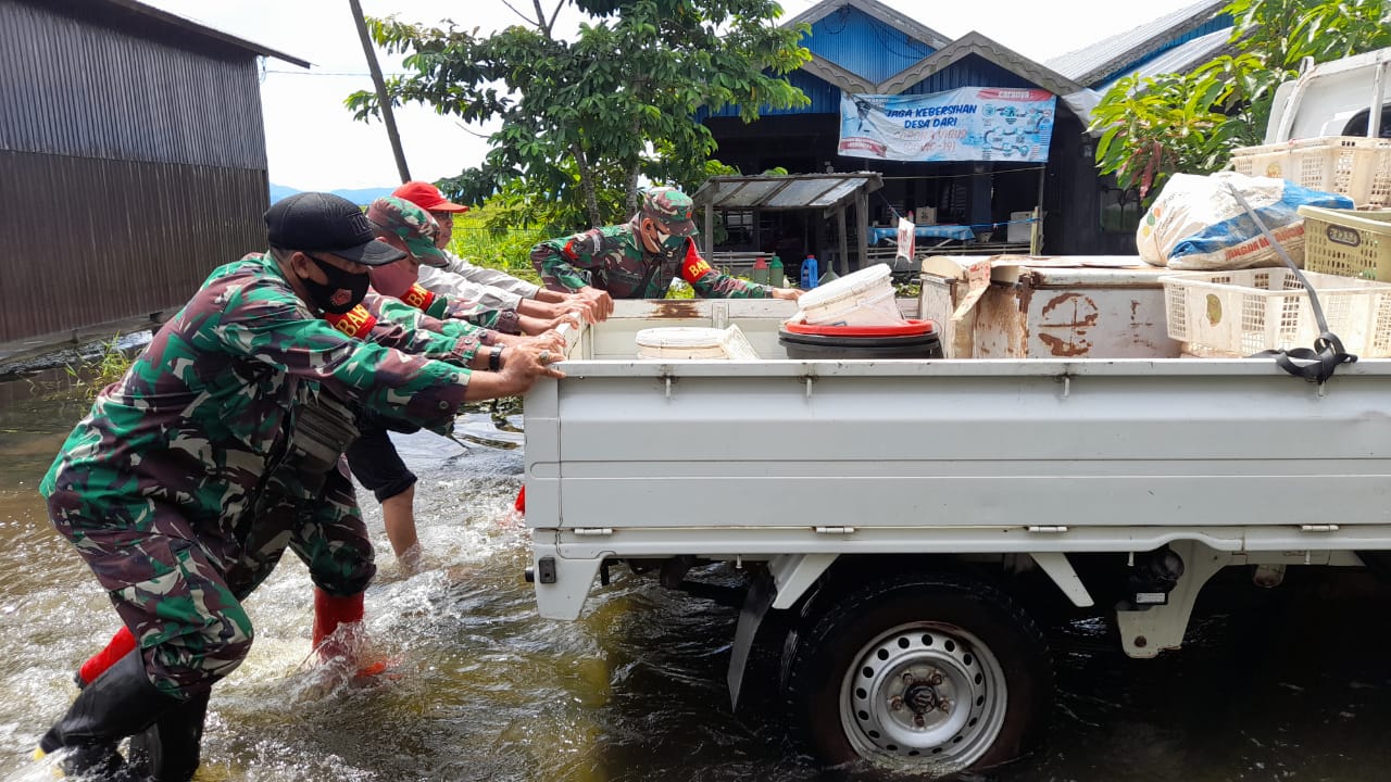 Kami berharap agar warga tetap waspada dalam beraktifitas sehari-hari dengan kondisi air yang masih belum surut, dan apabila ada hal-hal yang sifatnya emergency untuk segeranya menghubungi Babinsa atau Bhabinkamtibmas.”pungkasnya.(pendim1002).