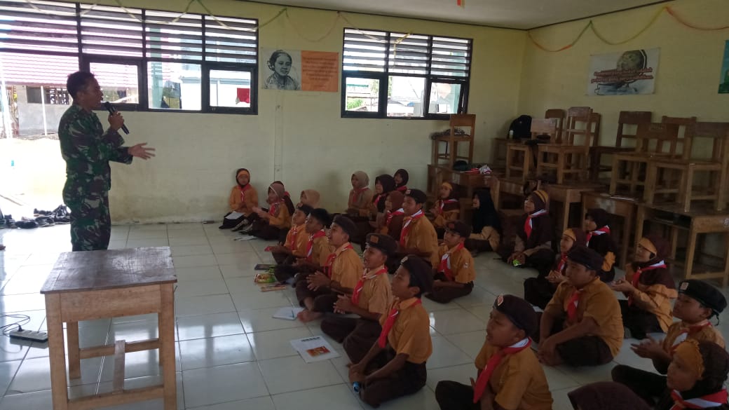BARABAi-Serda Agus Arahman Babinsa Koramil 1002-08/Labuan Amas Utara melaksanakan pembinaan pramuka tingkat penggalang di SDN 2 Tabat Kecamatan Labuan Amas Utara Kab.Hulu Sungai Tengah (HST) Kalimantan Selatan.Sabtu (10/09/2022).