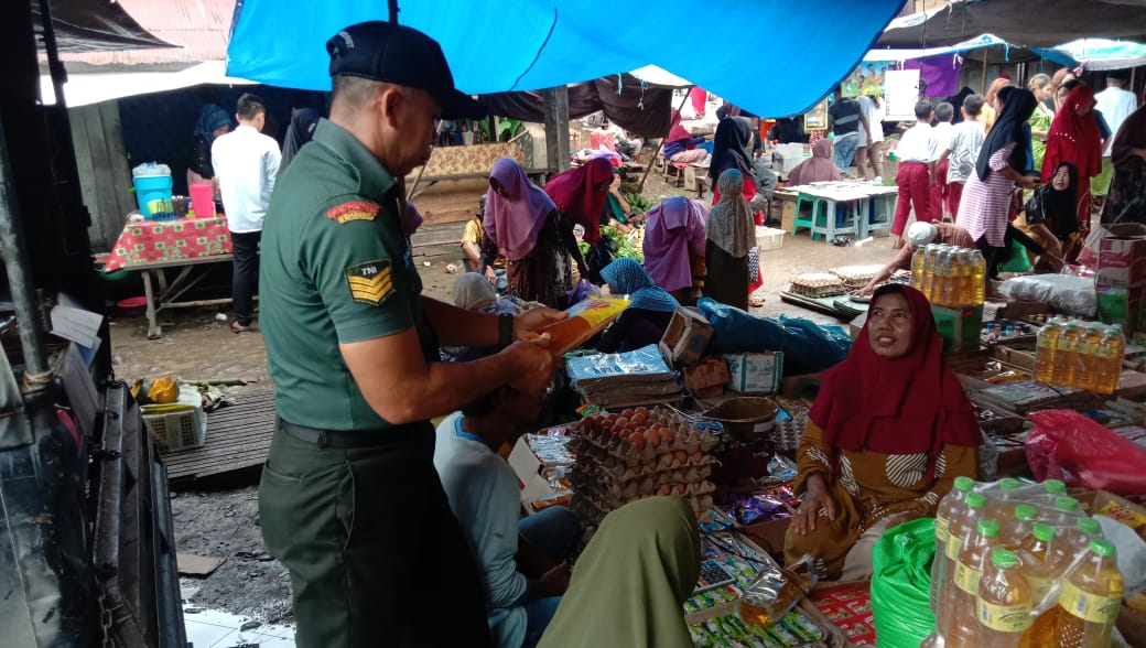 Kegiatan tersebut dilakukan Babinsa Serka Saipul Padilah bertujuan untuk memantau kondisi keamanan dan ketertiban di lingkungan pasar, serta memantau harga sembako dan ketersediaan bahan pokok yang ada di pasar.