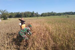 Danramil 1002-7/Batu Benawa Kapten Inf Andi Tiro membenarkan anggotanya melaksanakan pendampingan panen padi di wilayah binaan.