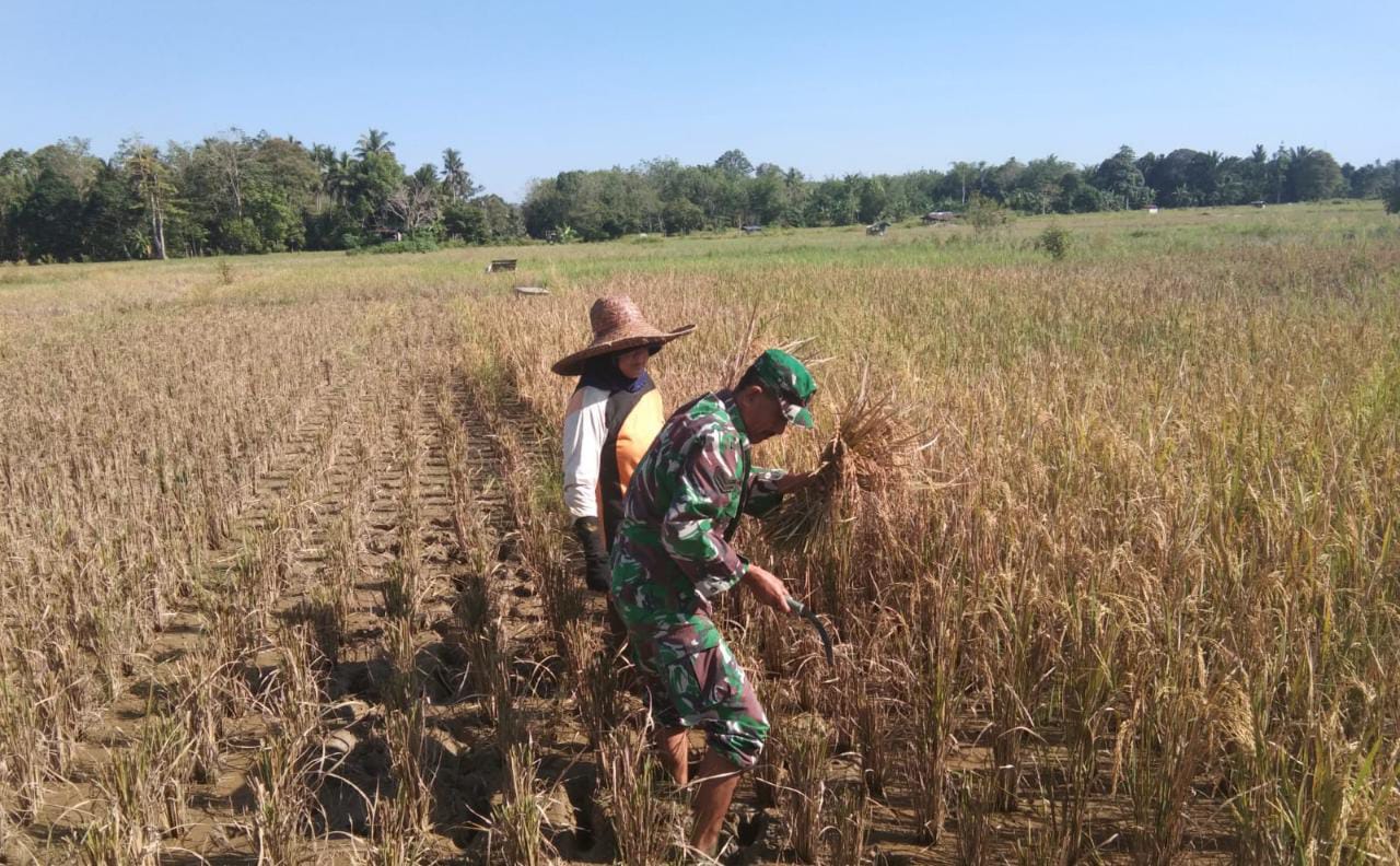 Danramil 1002-7/Batu Benawa Kapten Inf Andi Tiro membenarkan anggotanya melaksanakan pendampingan panen padi di wilayah binaan.