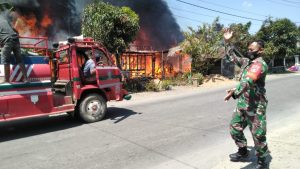 Cuaca yang sangat terik pagi menjelang siang ditambah hembusan angin yang kencang membuat api dengan cepat melahap 3 unit rumah.”terang Sertu Agus Rohmad.
