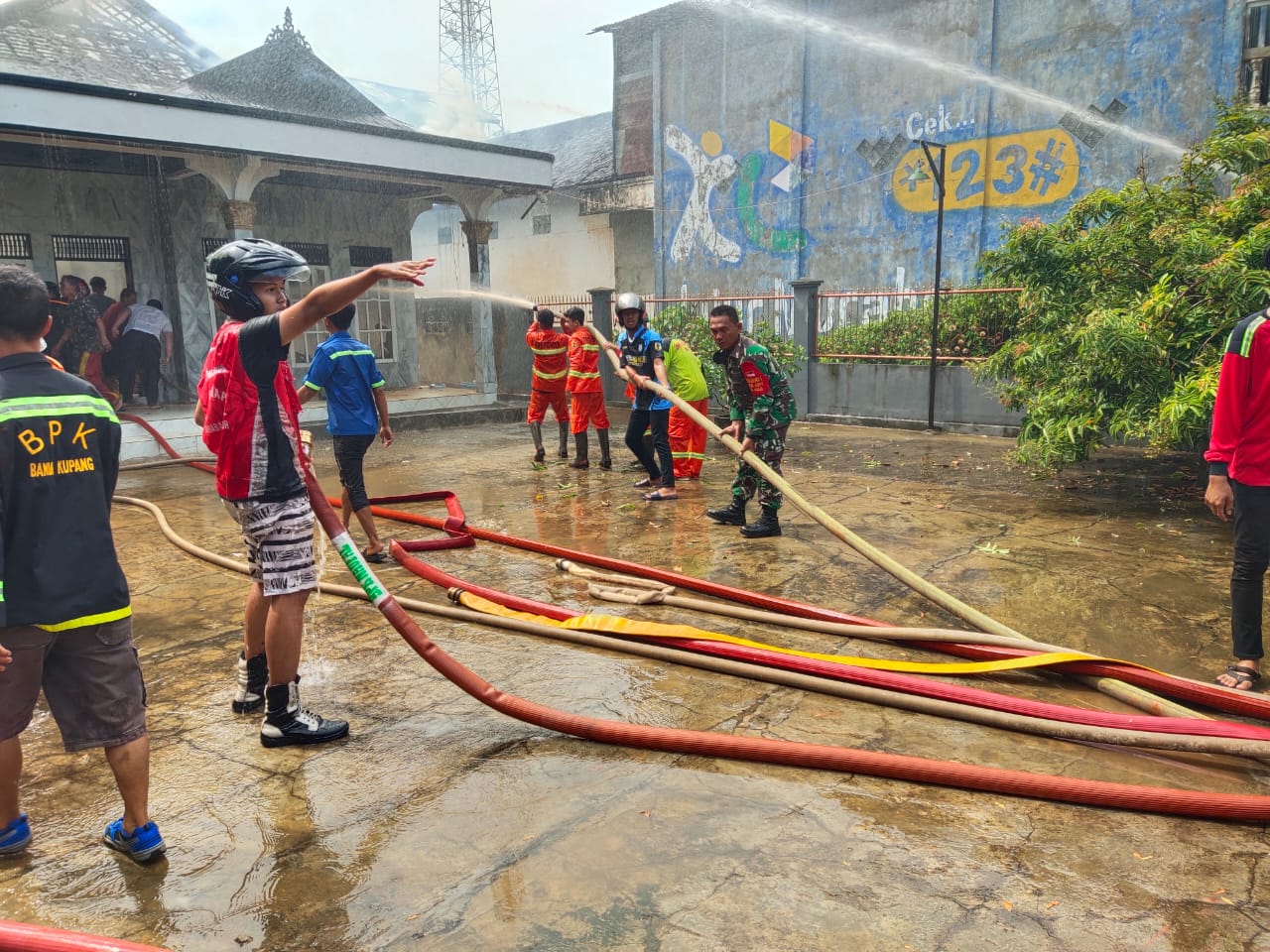 Cuaca yang cukup panas ditambah lagi hembusan angin yang sangat kencang membuat bangunan semi permanen ludes dan rata dengan tanah dalam waktu sekejap.