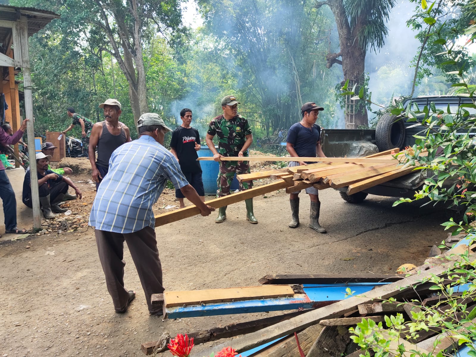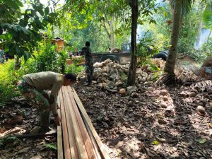 Lebih lanjut Kapten Inf Moh.Alip Suroso menyampaikan untuk bahan bahan bangunan tidak sekaligus kami kirim, ini mengingat tempat untuk penampungan bahan bangunan tidak ada,” sambungnya.