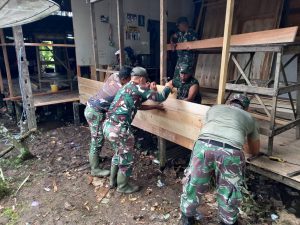 BARABAI-Kodim 1002/Hulu Sungai Tengah melaksanakan bedah 2 Unit RTLH (Rumah Tidak Layak Huni) dalam rangka menyambut HUT ke-61 Korem 101/Antasari, terus berlanjut meskipun hari libur.Minggu (04/12).