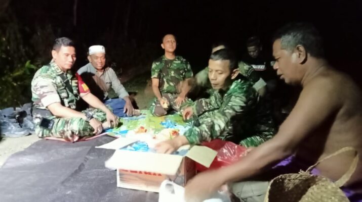 BARABAI-Dan SSK (Satuan Setingkat Kompi) Satgas TMMD ke-116 Kodim 1002/HST Lettu Inf H.Husni Thamrin bersama Kepala Desa Hapulang, Tokoh Agama dan Babinsa serta warga Hapulang melaksanakan Do’a bersama di titik Nol Lokasi TMMD, Kamis (04/05) malam