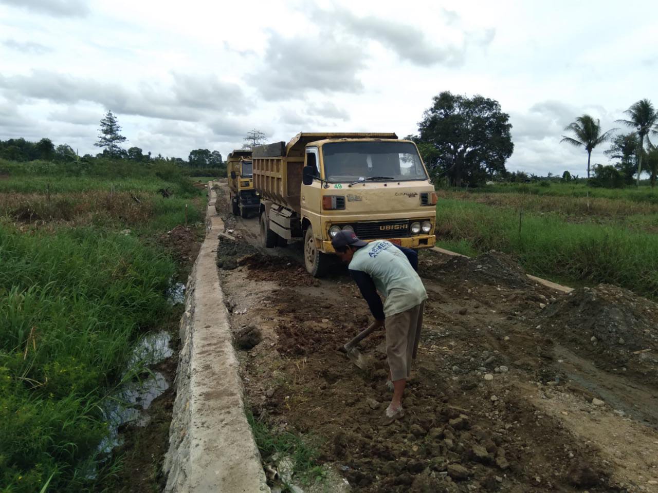 Terhitung 10 armada dump truck membawa material sirtu antri di titik 0 pada sasaran perbaikan mutu jalan sepanjang 1725 meter. sehingga pada saat pelaksanaan TMMD ke-112 tahun 2021 yang akan dibuka pada tanggal 15 September 2021 material sudah siap dan siap untuk dihampar,”tambahnya.