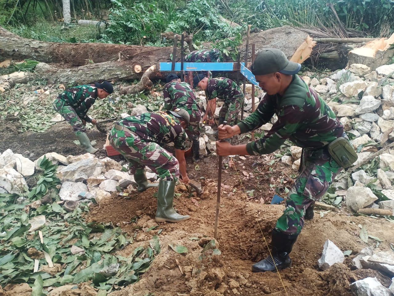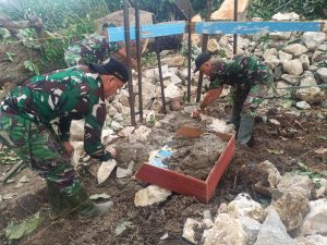Antusias warga dalam membantu renovasi musholla sungguh luar biasa, secara bergantian warga dengan riang gembira mengangkat batu dan adonan semen bersama anggota TNI,”sambungnya