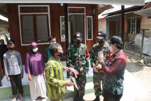 HULU SUNGAI TENGAH-Usai melakukan peninjauan sasaran jalan Prpgram TMMD ke-112 Kodim 1002/HST sepanjang 1.725 meter di desa Rantau Keinting Kec. Labuan Mas Utara Kab. HST, Bupati Hulu Sungai Tengah H. Aulia Oktafiandi, ST. MappCom menyerahkan hasil rehab Rumak Tidak Layak Huni kepada bapak Rusdi sekeluarga.