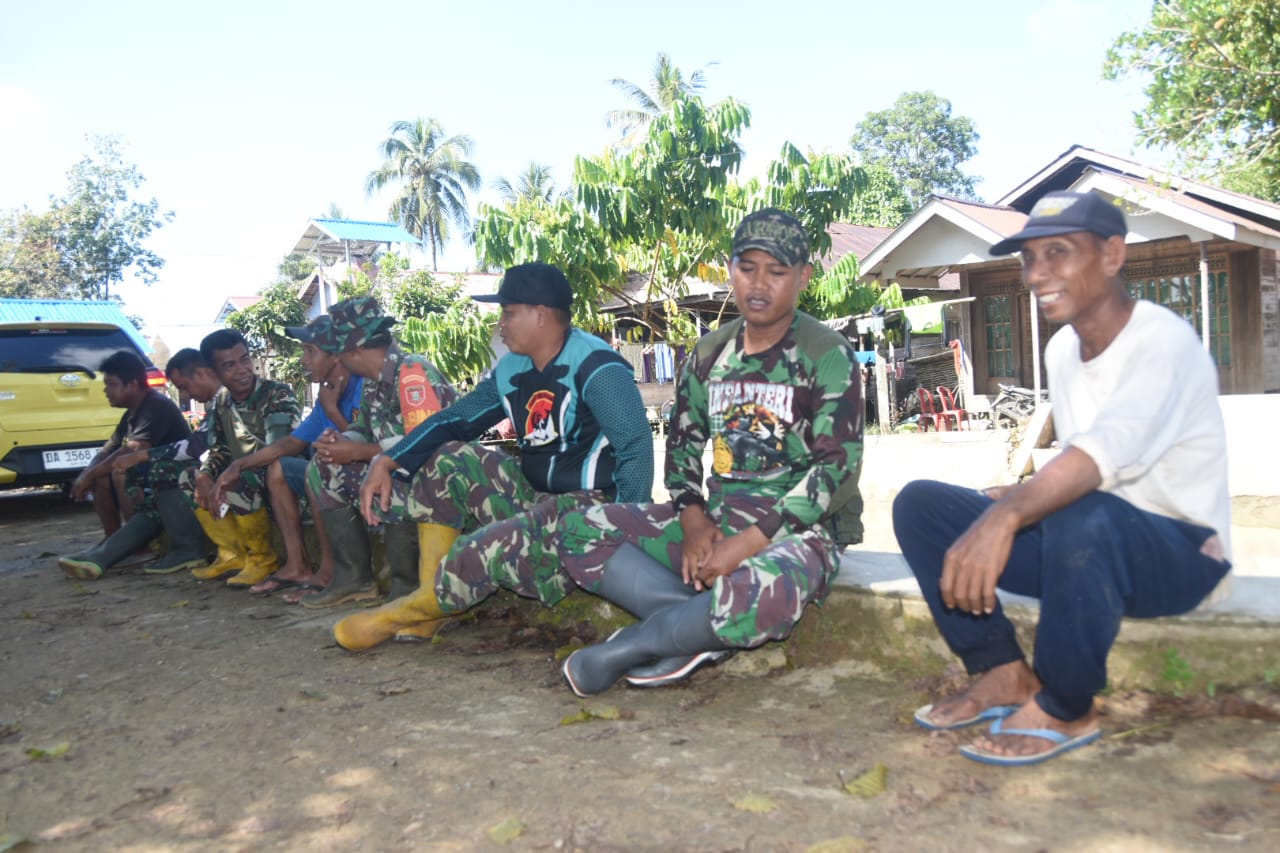 Terpantau anggota Satgas TMMD dengan penuh keakraban berbincang santai dengan warga masyarakat yang turut serta dalam pembangunan jalan sepanjang 1030 meter di Pengambau Hilir Luar. Tawa dan senyum menghiasi obrolan ringan tersebut, mencerminkan kedekatan antara TNI dan masyarakat.