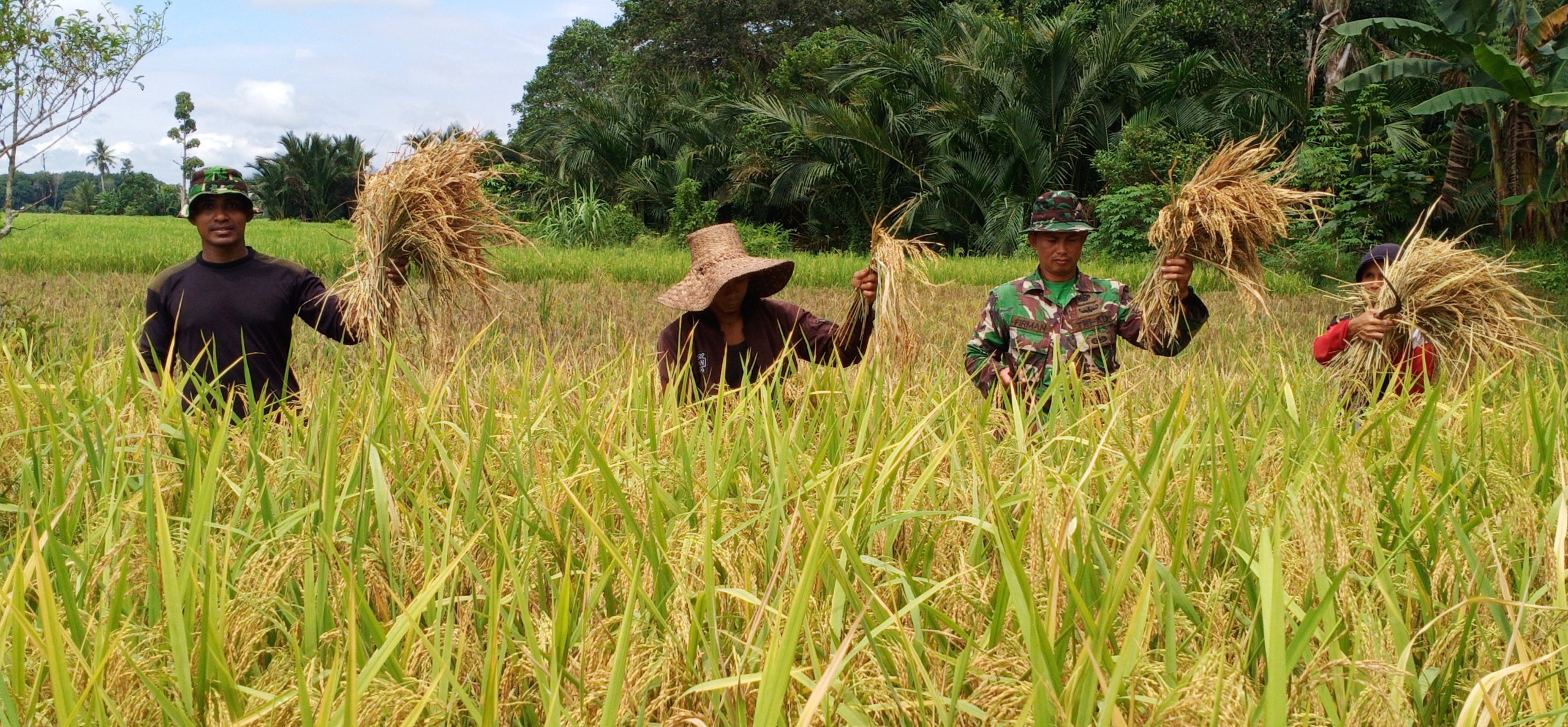 BARABAI – Dukung Swasembada Pangan Satgas TNI Manunggal Membangun Desa (TMMD) ke-107 tahun 2020 Kodim 1002/Barabai bantu warga panen padi,” Jum’at (03/4). Hal