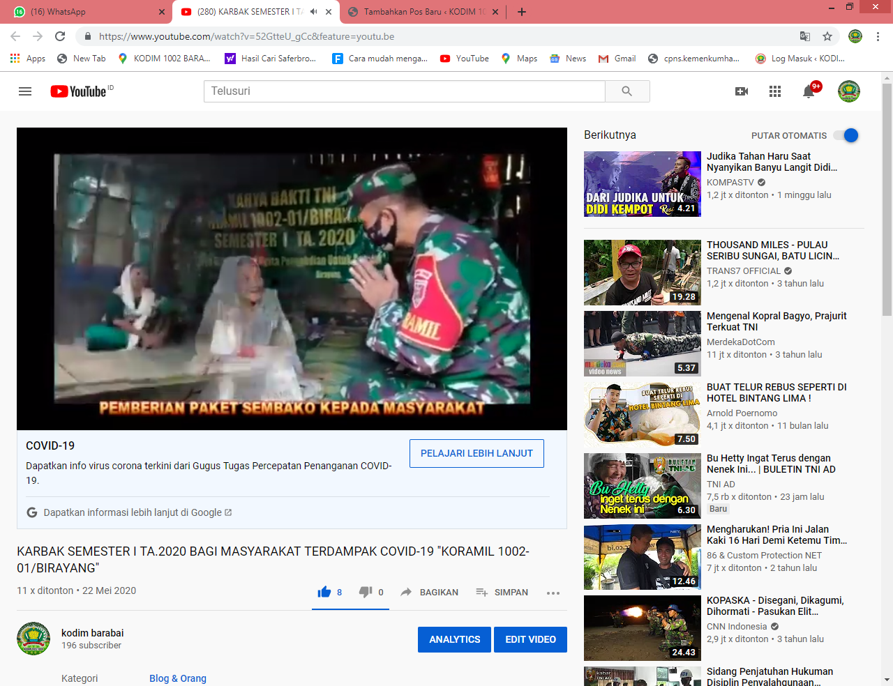 KARBAK SEMESTER I TA.2020 BAGI MASYARAKAT TERDAMPAK COVID-19 “KORAMIL 1002-01/BIRAYANG”