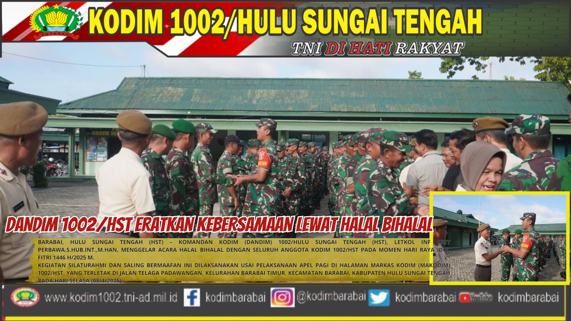 BARABAI, Hulu Sungai Tengah (HST) – Komandan Kodim (Dandim) 1002/Hulu Sungai Tengah (HST), Letkol Inf Fery Perbawa.S.Hub.Int.,M.Han, menggelar acara halal bihalal dengan seluruh anggota Kodim 1002/HST pada momen Hari Raya Idul Fitri 1446 H/2025 M.