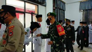 BARABAI-Komandan Kodim 1002/HST Letkol Kav Gagang Prawardhana.SIP.,M.Han bersama unsur Forum Koordinasi Pimpinan Daerah HST menghadiri Upacara Pengukuhan Anggota Paskibraka Kab. Hulu Sungai Tengah Tahun 2022 di Pendopo Bupati HST jalan Bhakti Barabai.Selasa (16/08).