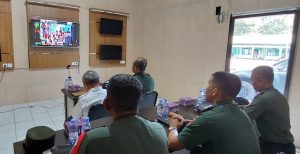 BARABAI-Komandan Kodim 1002/HST Letkol Kav Gagang Prawardhana.S.I.P.,M.Han didampingi Kabid KBPA Kab.HST Drs.H. Fardiannor dan Plh.Pasiter Kodim 1002/HST serta Danramil mengikuti pembukaan pelatihan Teknis Penurunan Stunting Video Confren.Rabu (07/12).