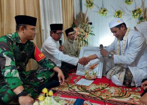 Acara akad nikah berlangsung di Desa Lok Besar RT.01 RW.001 Kecamatan Batang Alai Selatan Kab.Hulu Sungai Tengah dengan saksi nikah Dandim 1002/HST Letkol Kav Gagang Prawardhana.S.I.P.,M.Han.
