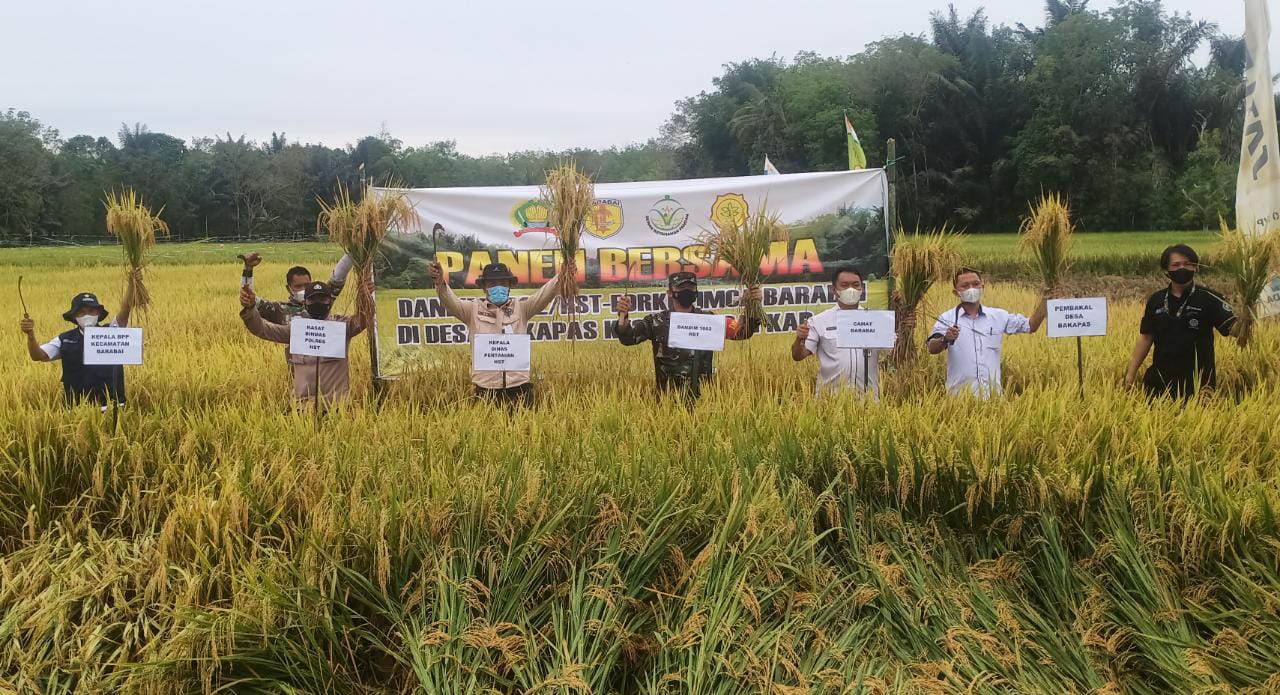 BARABAI-Komandan Kodim 1002/HST Letkol Kav Gagang Prawardhana bersama forum koordinasi pimpinan kecamatan Barabai melaksanakam panen bersama di desa Bakapas Kec.Barabai Kab.Hulu Sungai Tengah (HST) Kalimantan Selatan. Rabu (02/03).