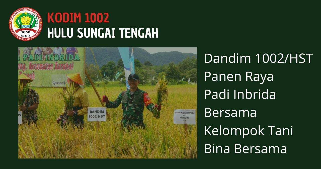 Sedangkan Dandim 1002/HST Letkol Kav Gagang Prawardhana.S.I.P.M.Han dalam kesempatan tersebut menyampaikan bahwa panar raya dan acara syukuran ini merupakan wujud rasa syukur kita kepada Allah SWT atas nikmat rezeki melimpah yang diberikan kepada petani,”ucapnya