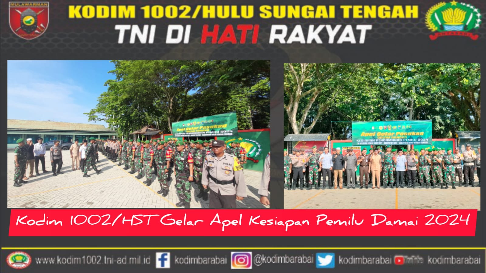 Usai melaksanakan apel Gelar Pasukan dan Deklarasi Pemilu Damai Dalam Rangka Pemilu Tahun 2024, Dandim 1002/HST Letkol Inf Fery Perbawa.S.Hub.Int.,M.Han mengatakan bahwa maksud dan tujuan dilaksanakan kegiatan ini untuk mengecek secara langsung kesiapan personel dan material dalam pemilu 2024,”ujarnya