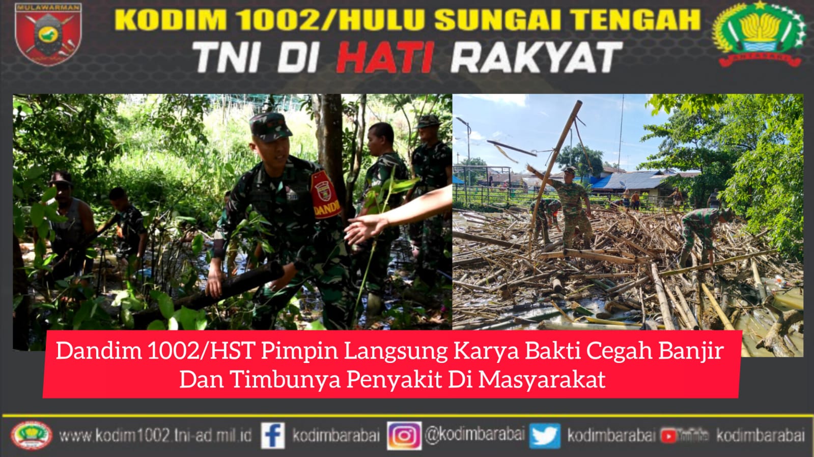 Dandim 1002/Hulu Sungai Tengah Letkol Inf Fery Perbawa. Mengatakan, Karya bakti yang dilaksanakan Kodim 1002/HST ini merupakan arahan langsung dari Panglima TNI Jendral TNI Agus Subiyanto yaitu Kodim diseluruh Indonesia untuk melaksanakan pembersihan di wilayahnya.