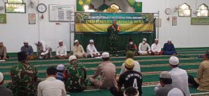 Didampingi oleh Danramil 1002-06/Barabai Kapten Inf Rudi Hartono bersama anggota koramil, Dandim bersilaturrahmi dengan pengelola dan jamaah masjid Dalilul Falihin dengan menerapkan protokol kesehatan.