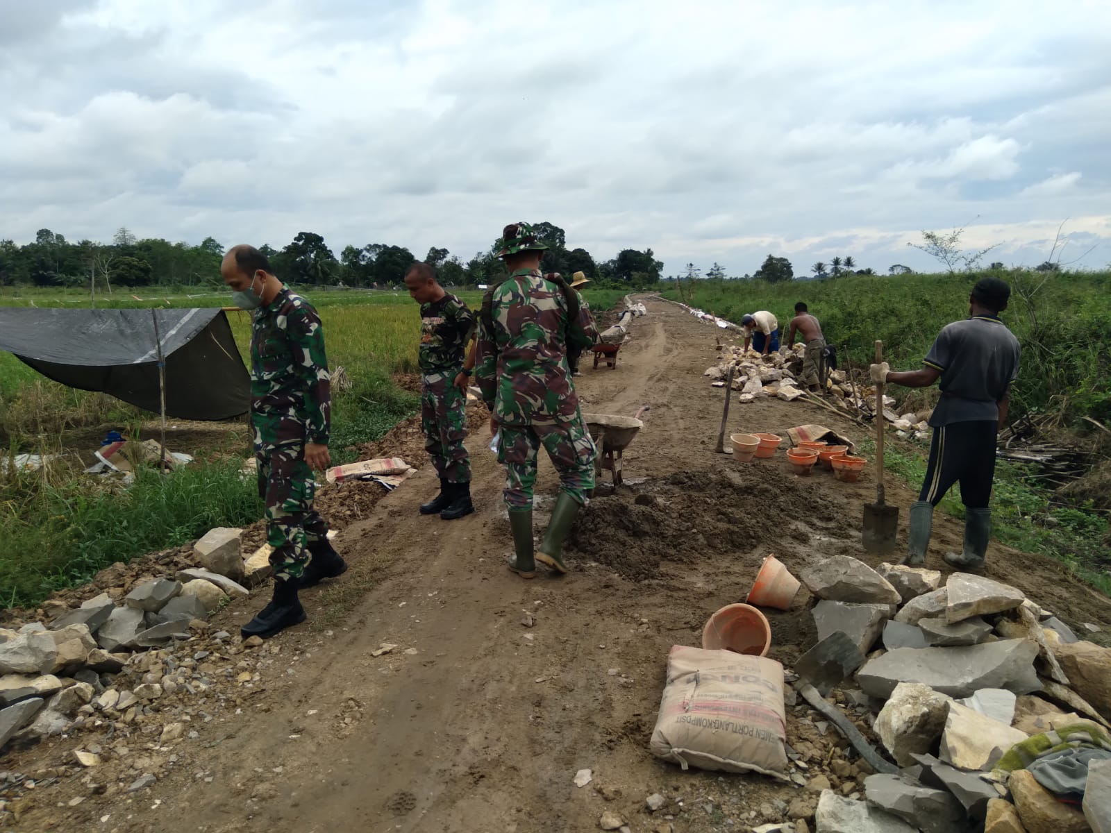 Didampingi oleh Pasi Kodim 1002/HST Kapten Czi Obet Subagiyo, Dandim meninjau langsung sasaran perbaikan mutu jalan sepanjang 1725 meter.