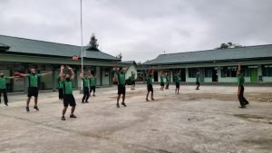 Diawali apel pagi, dilanjutkan dengan senam peregangan dan pemanasan dipimpin oleh Serda M. Abidin bertempat di lapangan Apel Makodim 1002/HST di jalan Telaga Padawangan Kelurahan Barabai Timur Kecamatan Barabai.