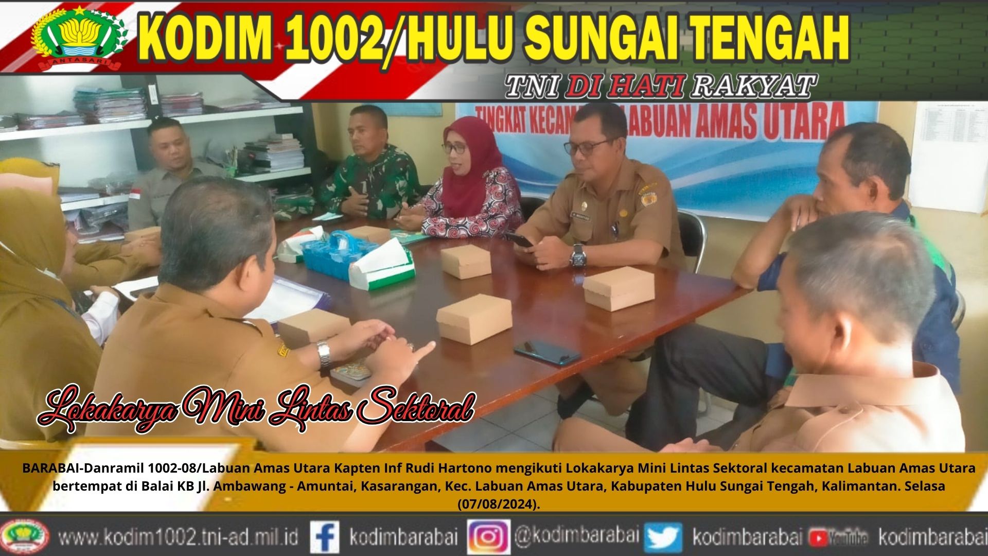 BARABAI-Danramil 1002-08/Labuan Amas Utara Kapten Inf Rudi Hartono mengikuti Lokakarya Mini Lintas Sektoral kecamatan Labuan Amas Utara bertempat di Balai KB Jl. Ambawang – Amuntai, Kasarangan, Kec. Labuan Amas Utara, Kabupaten Hulu Sungai Tengah, Kalimantan. Selasa (07/08/2024).