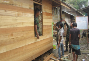 Dansatgas TMMD ke-107 Kodim 1002/Barabai Letkol Inf Muh.Ishak H.Baharuddin, S.I.P.,M.I.Pol saat meninjau pengecetan dinding rumah bapak Abdus Salam dibagian depan menggunakan pernis, dirinya mengaku puas dengan apa yang dikerjakan oleh anggota Satgas dan warga.
