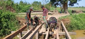 Dijelaskan oleh Serka Yatimin salah satu anggota Satgas TNI Manunggal Membangun Desa (TMMD) ke-112 dari Den Zipur 8/GM, kerangka jembatan ukuran 8×3,5 meter setelah kita bongkar kemudian diganti kerangka atau bantalan utama dengan balok ulin ukuran 10×20 centimeter kerena mengalami kerusakan.