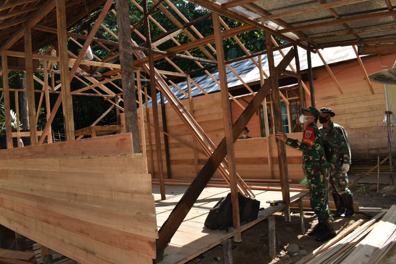 HULU SUNGAI TENGAH. Sejumlah sasaran TNI Manunggal Membangun Desa (TMMD) Ke-112 Kodim 1002/Hulu Sungai Tengah (HST) terus dikebut pengerjaannya, salah satunya Rumah Tidak Layak Huni (RTLH) milik Rusdi salah satu warga Desa Rantau Keminting, Kecamatan Labuan Amas Utara.Senin (20/09/2021).