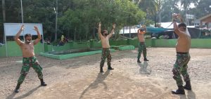 Kegiatan pembinaan kebugaran badan dilakukan di tiap-tiap koramil sejajaran Kodim 1002/Barabai, Kamis (16/4).